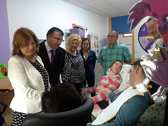 El director general de Personas con Discapacidad del Instituto Murciano de Acción Social (IMAS), Juan Castaño (2i), junto a la alcaldesa de San Pedro del Pinatar, Visitación Martínez (1i); y la concejala delegada de Política Social y Consumo, Francisca Pelegrín (3i), durante la visita realizada al Centro de Día de la Asociación para la Integración del Discapacitado en la Comarca del Mar Menor (AIDEMAR), con motivo del X Aniversario de la inauguración de sus actuales instalaciones.