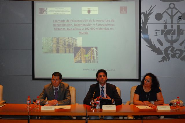 La directora General de Territorio y Vivienda, Yolanda Muñoz, lo anunció durante la clausura de la I Jornada de Presentación de la Ley 8/2013 de Rehabilitación, Regeneración y Renovaciones Urbanas celebrada en el Colegio de Ingenieros Técnicos Industriales de Murcia