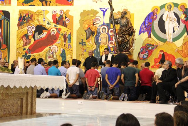 Unos 2.000 jóvenes secundaron la convocatoria de los fundadores del Camino Neocatecumenal, Kiko Argüello y Carmen Hernández, y se reunieron en la noche de ayer en la parroquia de San Pedro del Pinatar. Llegados de diferentes comunidades de Almería, Alicante, Mallorca y Murcia los jóvenes llenaron al completo la parroquia de San Pedro y el atrio exterior de la iglesia, desde donde siguieron la celebración a través de una pantalla gigante.