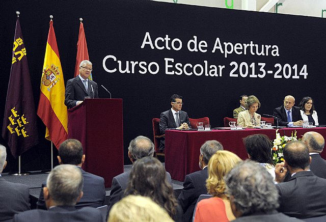 En su intervención, el jefe del Ejecutivo murciano destacó que el Gobierno regional "seguirá trabajando por una educación para el empleo, que tenga en el esfuerzo y el mérito sus grandes pilares; que promueva el cambio y la innovación en las aulas, y que instaure un sistema de valores donde primen el respeto y la tolerancia".