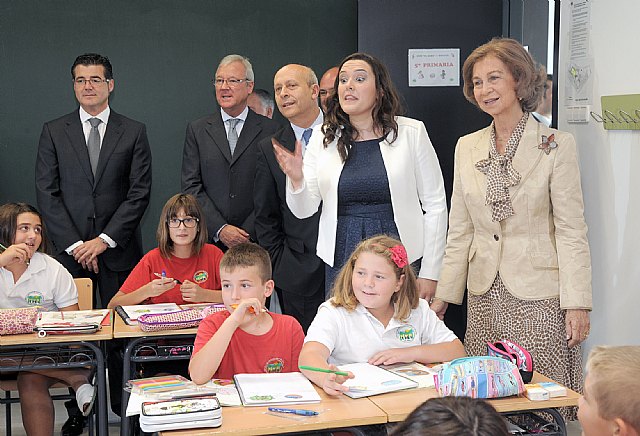Su Majestad la Reina Doña Sofía y el presidente de la Comunidad, Ramón Luis Valcárcel, acompañados por el ministro de Educación, Cultura y Deporte, José Ignacio Wert, inauguraron hoy el curso escolar 2013-2014, en un acto oficial que tuvo lugar en el colegio público El Alba, de la pedanía de Roldán, en el municipio de Torre Pacheco.