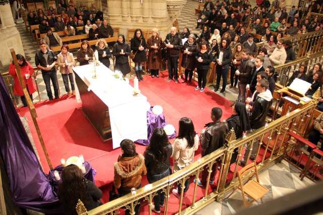 A las 23:00 horas comenzó la vigilia “Una luz en la noche”, dirigida por el Secretariado de Música (Coro y Orquesta Diocesana) del Centro Diocesano de Pastoral Juvenil. A través de esta oración, los jóvenes de la Diócesis participaron en la iniciativa “24 horas para el Señor” de dos maneras: saliendo a la calle a evangelizar e invitar a otros jóvenes a participar en la oración y del Sacramento de la Confesión, o rezando ante el Santísimo para que la misión de los jóvenes evangelizadores diera fruto.