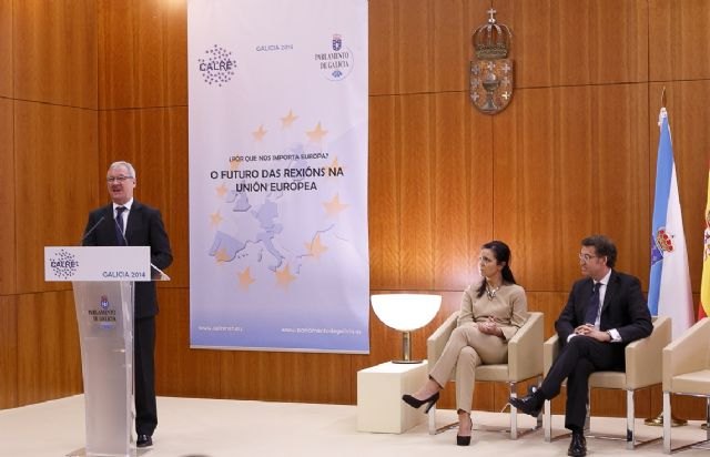 Valcárcel inauguró en Santiago de Compostela la jornada '¿Por qué nos importa Europa?: El futuro de las regiones de la Unión Europea', organizada por la Conferencia de Asambleas Legislativas Regionales Europeas (CALRE), que lidera la presidenta del Parlamento Gallego, Pilar Rojo, y cuya presentación fue realizada por el presidente de la Xunta de Galicia, Alberto Núñez Feijóo.