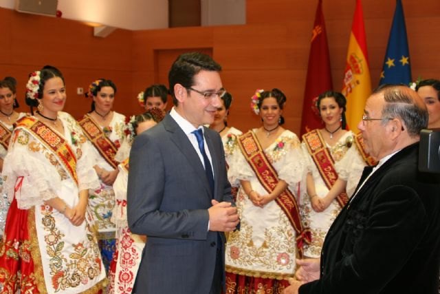 Durante la recepción, que tradicionalmente les ofrece el Gobierno regional tras su coronación, las reinas y las damas recibieron un escudo de la Región de Murcia, que el consejero prendió sobre sus bandas.