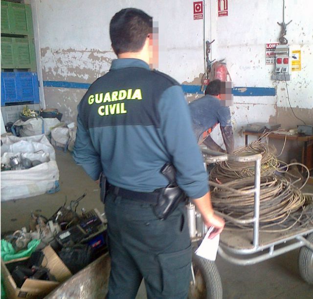 La Guardia Civil ha determinado que el arrestado se encuentra vinculado a la venta, en lo que va de año, de más de media tonelada de cable de cobre y material de chatarra, cuya procedencia no ha podido ser acreditada.