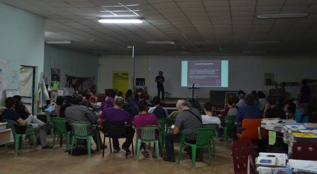 El Círculo Podemos Murcia celebró hoy viernes una asamblea para presentar y debatir dos de los borradores de donde podrán salir los estatutos de la formación política, que serán definitivamente aprobados a finales de octubre (más información www.asamblea.podemos.info). En el encuentro, que tuvo lugar ayer por la tarde en el CSA La Higuera, medio centenar de personas debatió y avaló los documentos titulados "Profundización Democrática" y "Es la hora de la gente", distintos al propuesto por el grupo promotor.