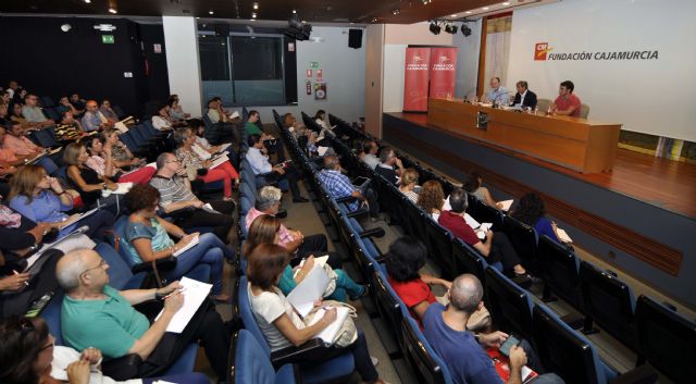 Más de 100 docentes de cooperativas de enseñanza han asistido esta tarde a la asamblea informativa que Ucoerm ha celebrado en el salón de actos de BMN-Cajamurcia para analizar el inicio del curso, y que ha contado con la presencia del consejero de Educación, Cultura y Universidades, Pedro Antonio Sánchez.