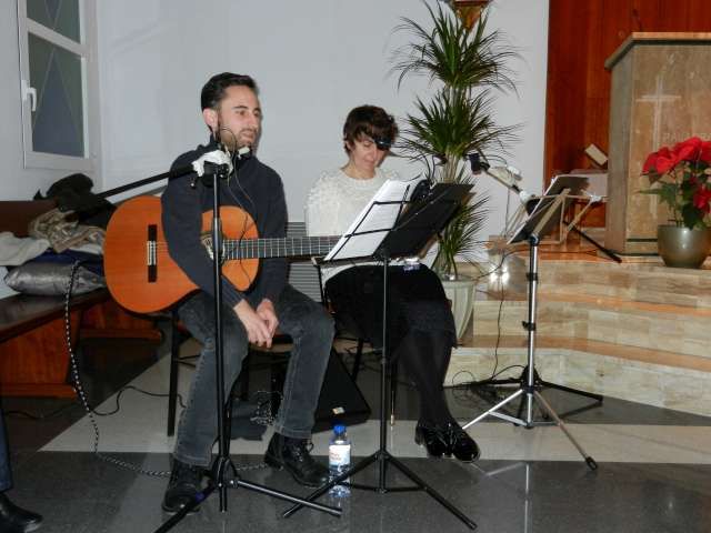 Carmela estuvo acompañada a la guitarra por Javi Marín, cantautor de Caravaca, que interpretó algunas de las canciones que se han compuesto con letras de Madre Amalia. Tanto Carmela como Javi compartieron con los presentes (religiosas, profesores de los distintos centros y amigos de la congregación) las canciones de ambos que forman parte del disco “Amigos fuertes de Dios”, publicado con motivo del V Centenario del Nacimiento de Santa Teresa de Jesús.