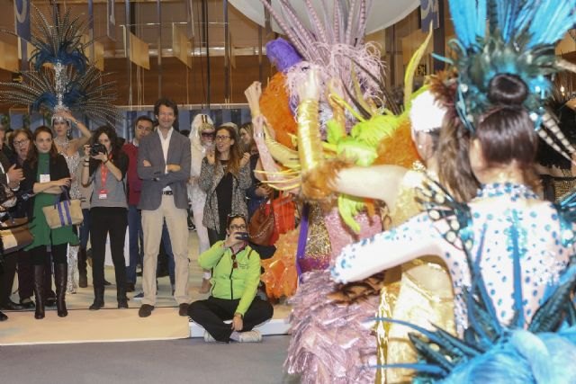 Durante la exhibición del Carnaval en el stand de la Región, el titular de Turismo invitó a los asistentes a "sumergirse en el mar de experiencias" que ofrece el municipio costero y a "no perderse estas fiestas, que son uno de los mayores referentes turísticos de la Región".