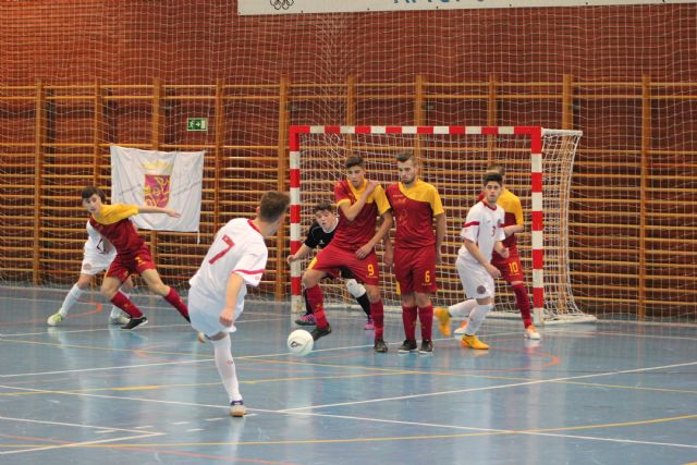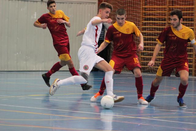 La selección murciana cadete se ha impuesto por 6-2 a Madrid en el primer encuentro de la fase previa del Nacional cadete de fútbol sala que se celebra en San Fernando de Henares y Arganda del Rey, por lo que se jugará, mañana domingo día 1, a las 11.30 horas, contra Aragón, el pase a la fase final a la que acceden las cuatro mejores selecciones de España.
