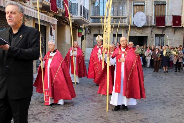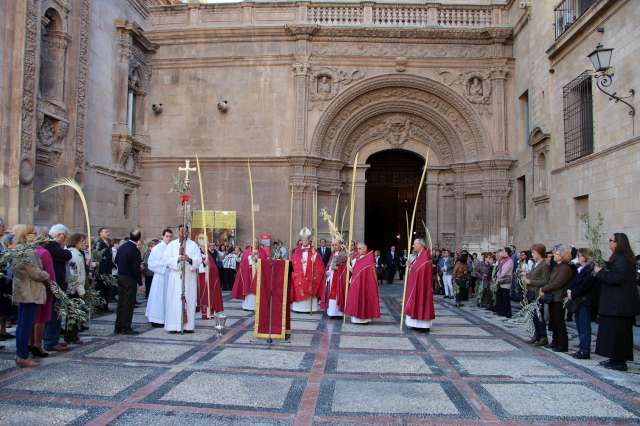 A las 10:00 horas comenzaba la bendición de las palmas en la plaza de la Cruz desde donde se inició la procesión, por la calle Francisco Salzillo, hasta el interior de la Catedral. Mons. Lorca presidió la celebración acompañado por varios canónigos de la Catedral. El Sr. Obispo recordó que la Cuaresma había sido un tiempo de reflexión en el que la Iglesia invitaba a la conversión, “a volver el rostro a Cristo”.