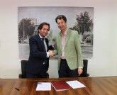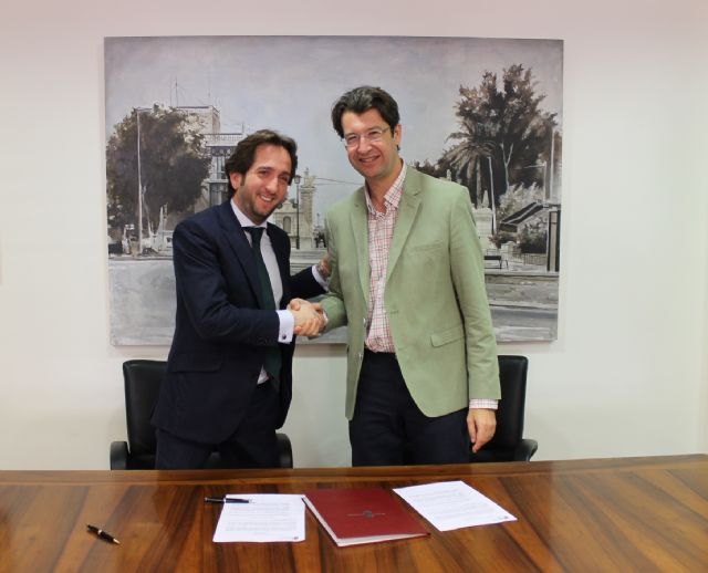 El consejero de Industria, Turismo, Empresa e Innovación, Juan Carlos Ruiz, y el presidente del Grupo Secuoya, Raúl Berdonés, como representante de la empresa Central Broadcaster Media, S.L., adjudicataria del servicio, firmaron hoy el contrato de gestión indirecta del servicio público de la televisión autonómica de la Región de Murcia.