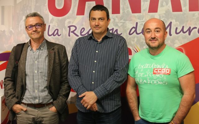Pujante ha trasladado esta propuesta que, según sus cálculos, serviría para generar unos 500 puestos de trabajo, al secretario general de la Federación de Enseñanza de CCOO en la Región, Pedro Manuel Vicente, y al secretario de Acción Sindical, Diego Reina, en una reunión mantenida en la sede regional de IU-Verdes.