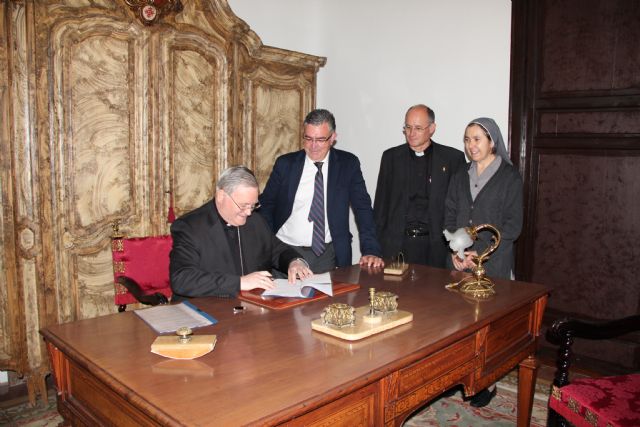 El Obispo de Cartagena, Mons. José Manuel Lorca Planes, ha firmado esta mañana un convenio de colaboración con la empresa Aguas de Murcia por el que esta empresa cede un local para ampliar las instalaciones de la Fundación Casa Cuna La Anunciación de Sucina.