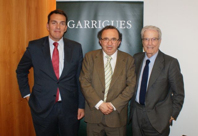 Los encargados de firmar el acuerdo fueron Antonio Garrigues Walker, como Presidente de la Fundación Garrigues, José Orihuela Calatayud, rector de la Universidad de Murcia, y Javier Ruano García, presidente del Consejo Social de la Universidad de Murcia.