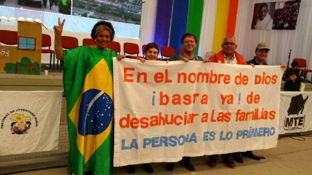 Estas son las primeras conclusiones que Joaquín Sánchez quiere destacar antes de llegar a España (estará en Murcia a partir de las 10 horas de la mañana del sábado 11 de julio), tras participar junto a José Antonio Vives, activista como él en la Plataforma de Afectados por las Hipotecas (PAH), en el Segundo encuentro Mundial de Movimientos Populares (EMMP) celebrado esta semana en Santa Cruz de la Sierra (Bolivia). Un encuentro que fue clausurado por el papa Francisco en la jornada final de su visita Bolivia, dentro del recorrido por diversos países de América Latina que le ha llevado también a Ecuador y Paraguay.
