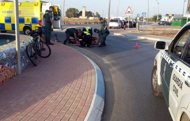 La Guardia Civil de la Región de Murcia, tras ser alertada por un ciudadano del inminente atropello de un ciclista por parte de un turismo que circulaba por la N-332a, a la altura de Los Alcázares, ha auxiliado al herido hasta que ha sido evacuado a un centro hospitalario.