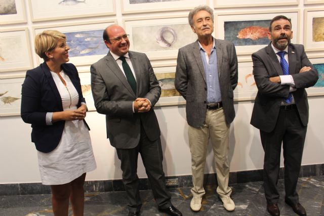 El presidente de la Comunidad, Pedro Antonio Sánchez, inauguró hoy en la sala de exposiciones temporales del Museo del Teatro Romano de Cartagena la muestra 'Peces' del artista Pedro Cano, que recoge su último ciclo pictórico inspirado en el mundo marino, los pescadores y sus redes.
