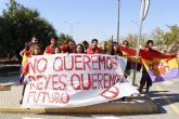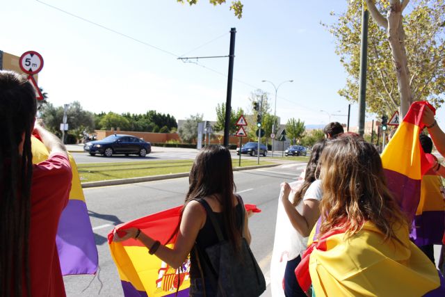 Desde la Unión de Juventudes Comunistas de España (UJCE) en la Región de Murcia queremos denunciar la actitud beligerante con la que las supuestas "fuerzas del orden público" han tratado a quienes nos manifestábamos: intimidaciones, amenazas de multa, identificación de algunas participantes, expulsión incluso del propio parking de la facultad… El objetivo era claro: evitar que el malestar estudiantil se abriese un hueco en "su" acto, y más aún si el "inmaculado" monarca formaba parte del mismo.