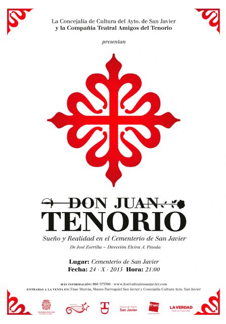Las entradas para ver 'Don Juan Tenorio' en San Javier el sábado 24 de octubre, a partir de las 21:00 horas, tendrán un precio de diez euros y se pueden adquirir en Fnac Murcia (Nueva Condomina), en el Museo Parroquial de San Javier y en la Concejalía de Cultura de la localidad.