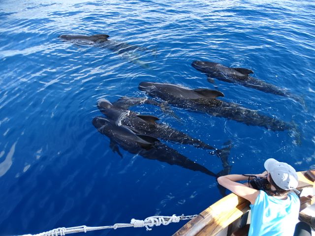 A la caída de la noche, un grupo de unos 30 delfines comunes acompañaba la navegación del velero Else hacia el puerto de Cartagena; desde octubre de 2012 no habíamos avistado a esta especie tan próxima a la ciudad. Una hora más tarde, ya entrada la noche, el velero llegaba al puerto de Cartagena tras completar 12 h continuas de navegación, en una jornada excepcional por el número de especies de cetáceos avistadas: delfines mulares, listados y comunes, calderones comunes y grises. Nunca antes se habían avistado tantas especies en un solo día.