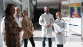 La consejera de Sanidad, Encarna Guillén, visitó hoy la exposición de pintura organizada por el Hospital General Universitario Reina Sofía de Murcia en la que se muestran trabajos de más de una veintena de artistas.