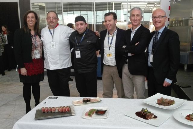 La Región de Murcia participó hoy en la XIV Cumbre Internacional de gastronomía 'Madrid Fusión 2016', que se celebrará hasta el próximo 27 de enero en Madrid. El consejero de Desarrollo Económico, Turismo y Empleo, Juan Hernández, asistió a la ponencia 'Atún rojo, una historia con futuro' que estuvo a cargo de Antonio Bernal y Patricio Alarcón, del restaurante Enso Sushi, y de José Fuentes, del restaurante Malvasía.