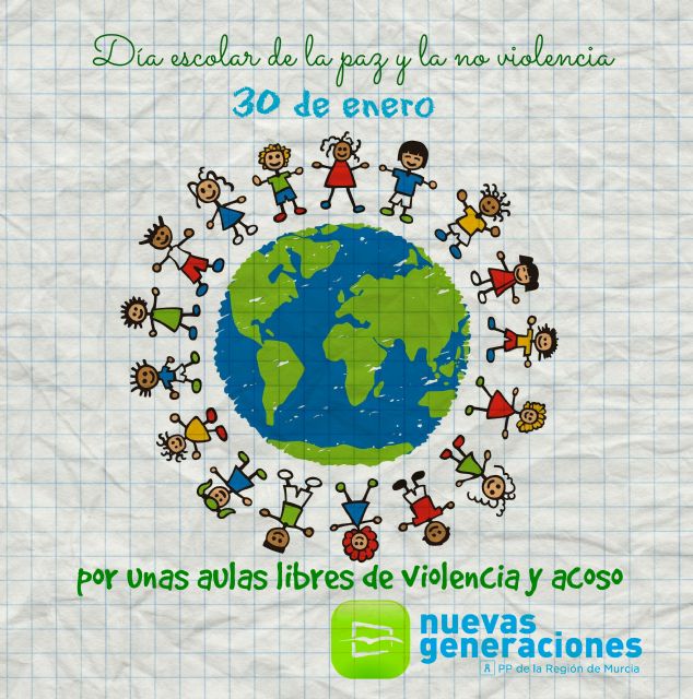 Nuevas Generaciones del Partido Popular de la Región de Murcia se suma, así, al Día Escolar de la Paz y la no Violencia, que se celebró por primera vez en 1964, por iniciativa del poeta, Llorent Vidal, como punto de partida a una educación no violenta y pacífica, coincidiendo con el aniversario de la muerte de Gandhi.