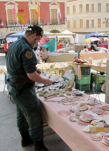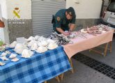 En uno de los puestos ambulantes, la Benemérita ha hallado varias piezas de animales marinos, entre las que se encuentran fósiles y corales, protegidos, respectivamente, por la Ley de Patrimonio Cultural de la Región y por el Convenio Internacional para el Comercio de Especies Amenazadas de Fauna y Flora Silvestres (CITES).