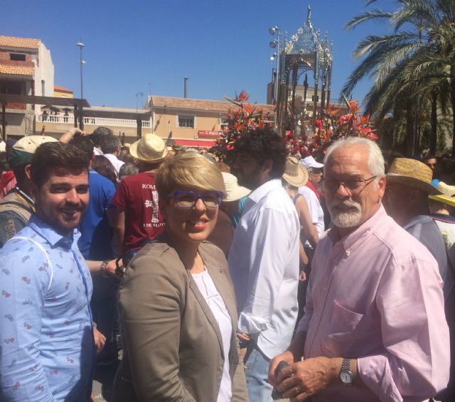 La consejera de Cultura y portavoz del Gobierno regional, Noelia Arroyo, asistió hoy a la festividad de la Invención de la Santa Cruz de Abanilla, participando en el baño de la Cruz y la bendición de las aguas del riego que por la acequia mayor discurren junto a la ermita.