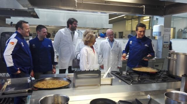 Hernández, junto a la rectora de la Universidad Católica San Antonio de Murcia, Josefina García, asistió al 'master lunch' 'Cocinando entre Estrellas', celebrado en las instalaciones del Centro de Cualificación Turística (CCT), que ofrecieron los cocineros estrella Michelin Pablo González-Conejero, Fran Martínez, Kiko Moya y Tino Helguera, y los alumnos del Grado de Gastronomía UCAM-CCT.