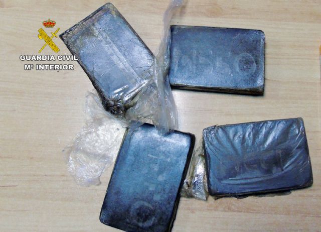 La Guardia Civil de la Región de Murcia, en el marco de la 'Operación verano 2016', establecida por la Benemérita para incrementar la seguridad ciudadana en las zonas de especial incidencia turística, ha detenido a una persona como presunta autora de delito de tráfico de drogas. Se han incautado cuatro pastillas de hachís, con un peso total de 400 gramos, ocultas en el habitáculo de la rueda de repuesto de un vehículo que circulaba por el municipio de Los Alcázares.