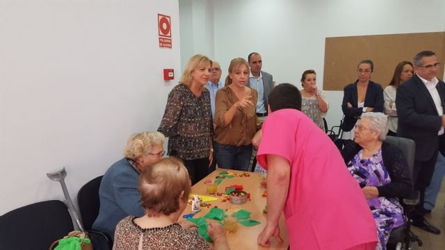 La consejera de Familia e Igualdad de Oportunidades, Violante Tomás, junto al alcalde de La Unión, Pedro López Millán, visitó hoy el nuevo centro de día para personas mayores del municipio, que la Comunidad pone en marcha con la incorporación de los primeros usuarios.
