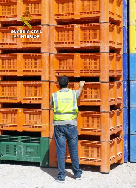 La Guardia Civil de la Región de Murcia, en el marco de la denominada operación 'TRADEBOX', ha desarticulado un grupo delictivo, integrado por cuatro personas y radicado en Alicante, dedicado a la sustracción y posterior comercialización ilícita de envases de plástico utilizados para almacenar y transportar productos del campo (palots).