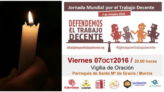 Desde estas instituciones invitan a todos los fieles a la vigilia de oración que tendrá lugar esta tarde, a las 20:00 horas, en la parroquia de Santa María de Gracia de Murcia.
