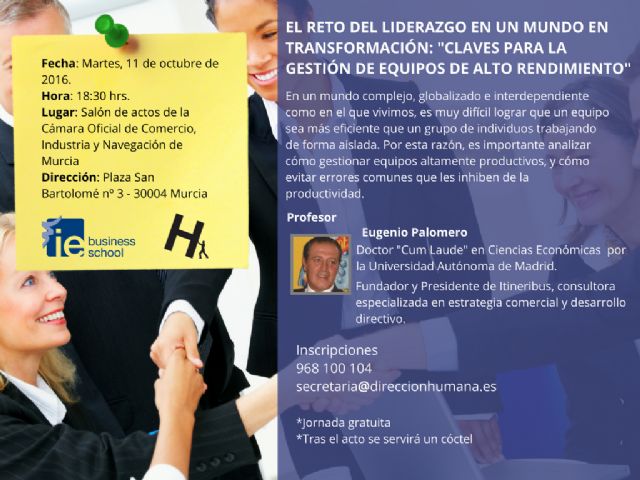 Se trata de una iniciativa enmarcada dentro de la VI edición del Programa de Alta Dirección Advanced Management Program Murcia, que dará respuesta a cuestiones como las estrategias de liderazgo a aplicar para inspirar al equipo y producir mejores resultados, cuáles son los distintos estilos de dirección a la hora de liderar un equipo de alto rendimiento o cómo estructurar, enfocar y ligar el trabajo del equipo con las necesidades de la empresa.