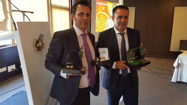 El entrenador del UCAM, José María Salmerón y el técnico del Plásticos Romero FS, Juan Carlos Guillamón, han sido premiados por la Federación Española de Fútbol (RFEF) con los premios Ramón Cobo de la temporada 2015-2016, que se han entregado en el día de hoy en la Ciudad del Fútbol de Las Rozas.