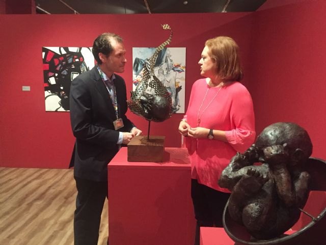 La directora general de Bienes Culturales presentó esta mañana la exposición junto a uno de los responsables del proyecto y voluntario deAfacmur, Adolfo Espín, y explicó que "la finalidad de la muestra es seguir recaudando fondos para el proyecto 'Luchando por un sueño' a través de la posterior venta de las obras en las que los artistas de la Región de Murcia han demostrado, una vez más, su carácter solidario y su implicación en la sociedad".