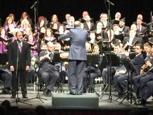 El coqueto Teatro Circo de la ciudad de Murcia acogió ayer un gran concierto de piezas de zarzuela, con la Coral Discantus y la Banda de la Academia General del Aire, con su uniforme oficial. El céntrico teatro se llenó para disfrutar de un espectáculo musical cuyos beneficios iban destinados a la Casa Cuna de Sucina, que acoge y ayuda a mujeres con hijos en situación precaria.