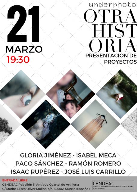 El Centro de Documentación y Estudios Avanzados de Arte Contemporáneo de la Región de Murcia (Cendeac) acoge mañana una presentación de proyectos fotográficos abierta al público bajo el título 'Otra historia'. La actividad está organizada por el Colectivo Underphoto, en colaboración con la Consejería de Cultura y Portavocía.