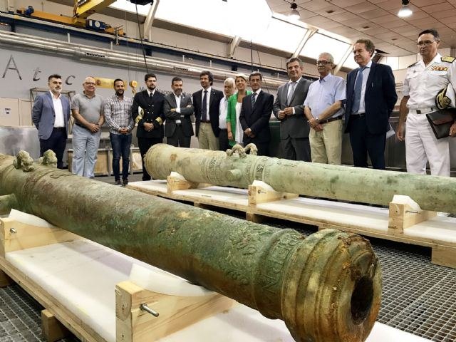 La expedición, organizada por el Ministerio de Educación, Cultura y Deporte, en colaboración con el Consejo Superior de Investigaciones Científicas (CSIC), el Instituto Español de Oceanografía (IEO) -organismos dependientes del Ministerio de Economía, Industria y Competitividad- y la Armada española, ha permitido recuperar los dos cañones de 4 metros de longitud y más de 2 toneladas de peso cada una, a una profundidad récord de 1.137 metros, y otras piezas de excepcional interés documental, como un grifo en bronce, una plancha de cobre perforada a modo de respiradero y tres roldanas de bronce con restos de madera por analizar.
