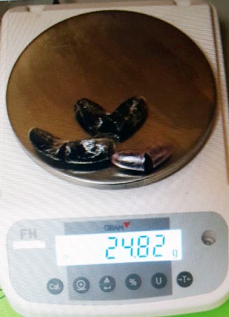 Tras ser sometida a una inspección, le fueron halladas ocultas en su organismo tres bellotas de hachís, con un peso total de 25 gramos, por lo que resultó detenida como presunta autora de delito de tráfico de droga.