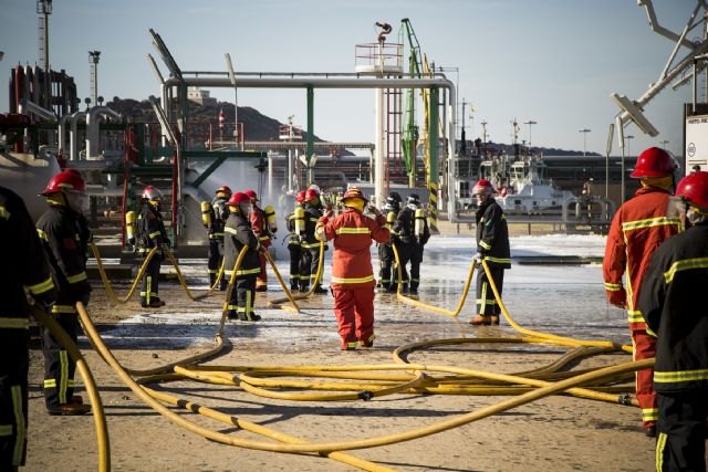 Han participado servicios de intervención ante este tipo de accidentes de Repsol, bomberos del Servicio de Extinción de Incendios y Salvamento y miembros de Protección Civil del Ayuntamiento de Cartagena, y efectivos de la Autoridad Portuaria y Capitanía Marítima.