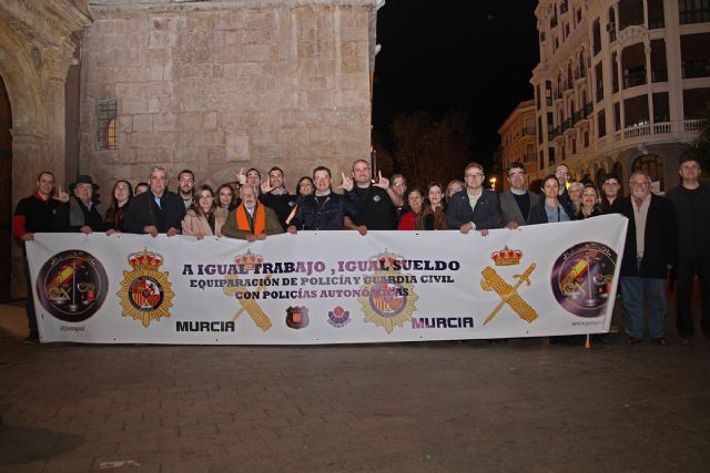 El diputado nacional de Ciudadanos, Miguel Garaulet, el diputado regional Miguel López-Morell, la concejal en el Ayuntamiento de Murcia, Paqui Pérez, los miembros de la ejecutiva de Ciudadanos, Valle Miguélez, Lola Jiménez y Francisco Álvarez, junto a decenas de afiliados y simpatizantes de la formación naranja, han participado en el acto de recogida de firmas organizado por la asociación Jusapol en la plaza de Santa Domingo de Murcia para conseguir apoyo, con el fin de que se produzca la efectiva igualdad y equiparación salarial de los policías en toda España.