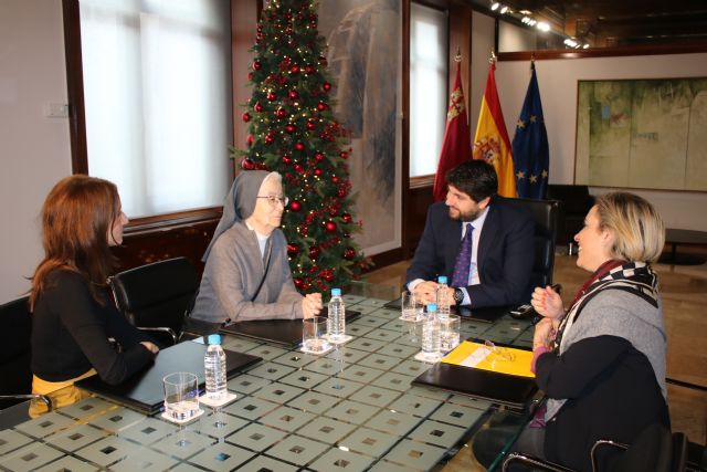 López Miras recibió en el Palacio de San Esteban a la presidenta de la Federación Española de Religiosos de la Enseñanza de la Región (FERE-CECA), la hermana Alicia Plaza, el presidente de la Confederación Española de Centros de Enseñanza de la Región de Murcia (CECE), José Francisco Parra, y el de la Unión de Cooperativas de Enseñanza de la Región de Murcia (Ucoerm), Juan Antonio Pedreño.