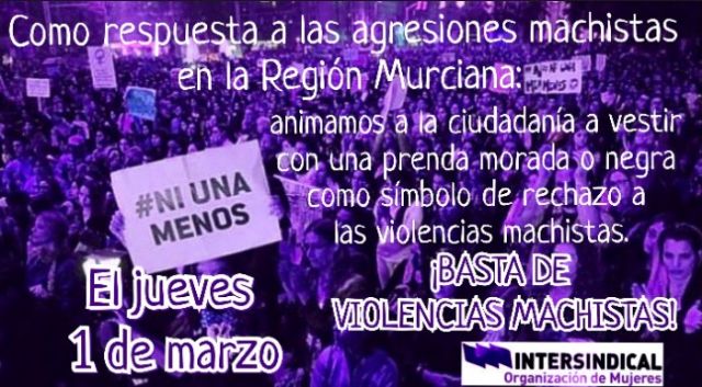 Queremos expresar nuestro apoyo a las víctimas y desearles una pronta recuperación. Creemos que la situación es de extrema gravedad y animamos a la ciudadanía de la Región Murciana a dar una respuesta cívica, simbólica y contundente contra las violencias machistas. Concretamente, proponemos que el próximo jueves 1 de marzo todas las personas que estamos hartas de las violencias machistas que sufrimos las mujeres vistamos con alguna prenda negra o violeta. Es un simple gesto para mostrar nuestro rechazo a esta lacra social. Además, recordamos que el próximo 8 de marzo se ha convocado una huelga feminista laboral, estudiantil, de cuidados y de consumo. Animamos a todas las mujeres a secundarla y a demostrar que si nosotras paramos, se para el mundo. Es necesario tomar medidas urgentes para garantizar los derechos y libertades de todas las mujeres. La situación de desigualdad laboral y social que sufrimos es insostenible porque, por desgracia, nos va la vida en ello. ¡Basta de violencias machistas!
