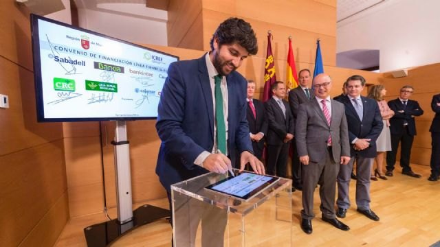 En el acto de firma del convenio entre el Instituto de Crédito y Finanzas de la Región (Icref), los representantes de la Sociedad de Garantía Recíproca 'Avalam' y las entidades Bankinter, Banco Sabadell, Bankia, Cajamar, Caja Rural Central, Caja Rural Regional y Caixabank, el jefe del Ejecutivo regional explicó que las empresas "podrán solicitar préstamos de hasta 300.000 euros destinados a proyectos de inversión o necesidades de capital circulante".