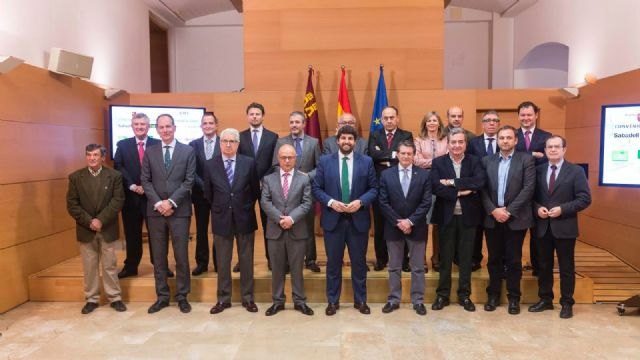 El jefe del Ejecutivo regional, Fernando López Miras, presidió hoy la firma del convenio 'Financia-Agro' entre la Comunidad y diversas entidades financieras por el que se pone en marcha una línea de crédito de 8 millones de euros que beneficiará a más de 140 empresas de la Región de sectores como la agricultura, la ganadería y la pesca.