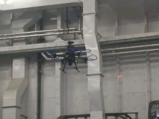 Navantia ha realizado hoy en el Astillero de Ferrol, junto con la UMI y las empresas locales Avansig y Stgo, una demostración del uso de drones (UAVs) en la construcción y reparación naval. Para facilitar la accesibilidad de los asistentes, el dron ha navegado por el hangar del Cantabria, parándose en puntos concretos y realizando una inspección visual.
