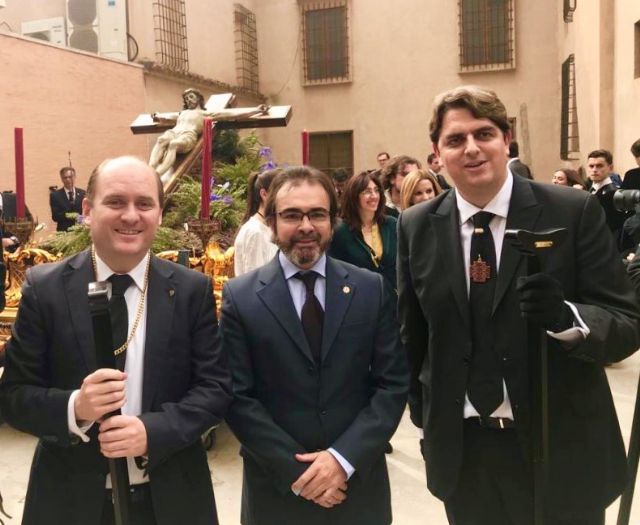 El consejero de presidencia y Fomento, Pedro Rivera, participó hoy en el traslado de la imagen del Cristo de Santa Clara la Real, obra de Salzillo, desde el huerto del convento de monjas clarisas hasta la iglesia de San Bartolomé en Murcia, desde donde saldrá en procesión en la tarde del Viernes Santo formando parte de la procesión del Santo Entierro.